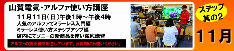 今年の11月はまちゼミが開催されないので、11月のセミナーの予定がスッポリ・・・という訳で、11/11にα(アルファ)使い方セミナーを開催しようと思います!