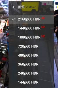 HDRモニターですからYoutubeの画質設定もちゃんと「HDR」の表記。