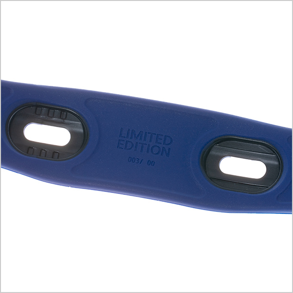 wena wristがもつ先進性を表現した鮮やかなブルーにより、様々なアクティビティにもぴったりなデザインのヘッドに仕上げました。ブルーブラックモデルは、ベゼル文字部分とボタンにさし色としてブルーをいれることでさりげないスポーティ-さを演出し、ブルーモデルは、ベゼル部分をはっきりとしたブルーにすることで、アクティブな印象に仕上げました。ヘッド裏蓋にも“LIMITED EDITION”の文字をあしらった特別仕様となっています。