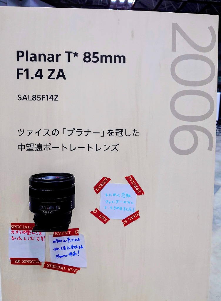 その他、アプリケーションの特設ブースがあったり、バスケをFE 28-70mm F2 GMで撮影できるコーナーがあったりもしましたが、個人的にグッと来たのが思い出のα、レンズ紹介コーナー。