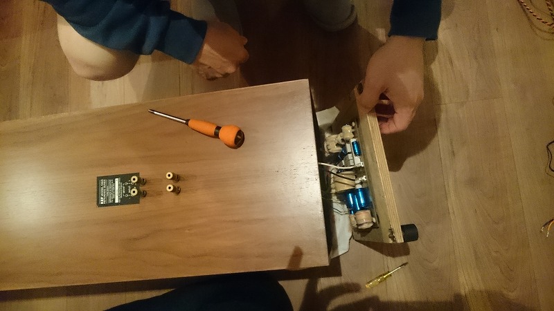 音だしのテストを・・・と思ったら、このスピーカー4Ωなので手持ちのアンプでは鳴らせず。。アンプ買いなおしました笑