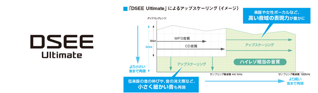 々な音質の音楽データをハイレゾ相当にアップスケーリングする DSEE Ultimeteを搭載