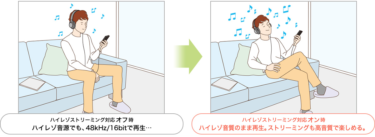 ハイレゾストリーミングをオンにすればストリーミングサービス使用時もハイレゾ音質のまま再生が可能です。