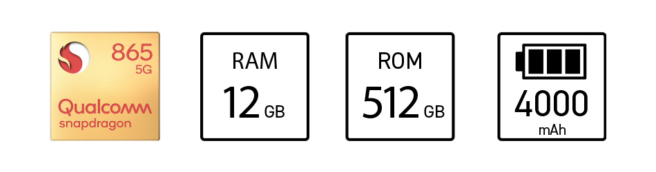 圧倒的な通信速度と処理能力を誇る高速CPU Qualcomm(R) Snapdragon(TM)865 5G Mobile Platform、Android(TM) 10、RAM 12GB/ROM 512GBの大容量メモリ、さらに4000mAhの大容量バッテリーを搭載。防水・防塵にも対応しているので、野外の現場においても高いパフォーマンスを発揮します。
